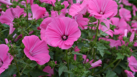 Plante formant de grosses touffes couvertes de magnifiques fleurs roses en calice. Bonne fleur à couper. Du plus bel effet dans les massifs ou en haie annuelle. Facile a cultiver, rustique et de floraison abondante. Hauteur : 80 à 120 cm. Floraison: juillet à octobre.